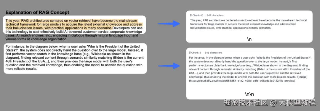 - 将文档拆分为较小、集中的信息单元(例如一句话),更加精准地匹配用户所输入的问题。