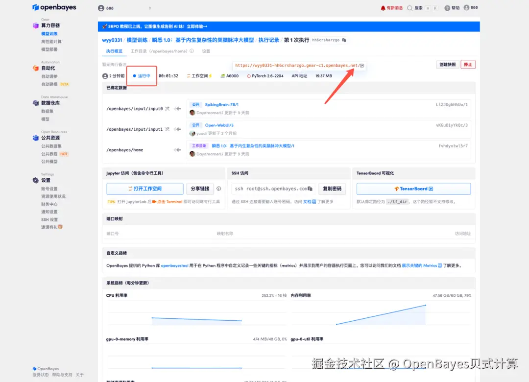 「瞬悉 1.0:基于内生复杂性的类脑脉冲大模型」现已上线至 OpenBayes 公共教程板块, 点击下方链接即可一键部署。