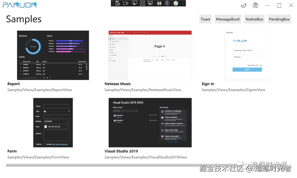 Panuon.WPF.UI 是一个适用于定制个性化UI界面的组件库。它能帮助你快速完成样式和控件的UI设计,而不必深入了解WPF的 ControlTemplate 、 Storyboard 等知识。