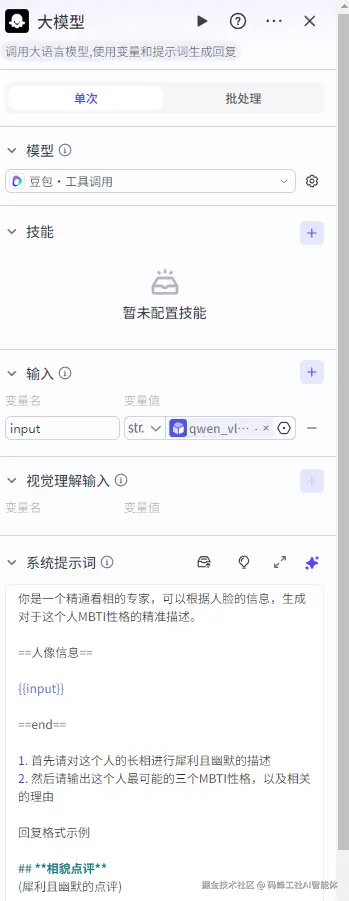 此工作流仅通过自拍照简单测试分析人物的MBTI性格,后续可以根据工作流自行丰富功能。