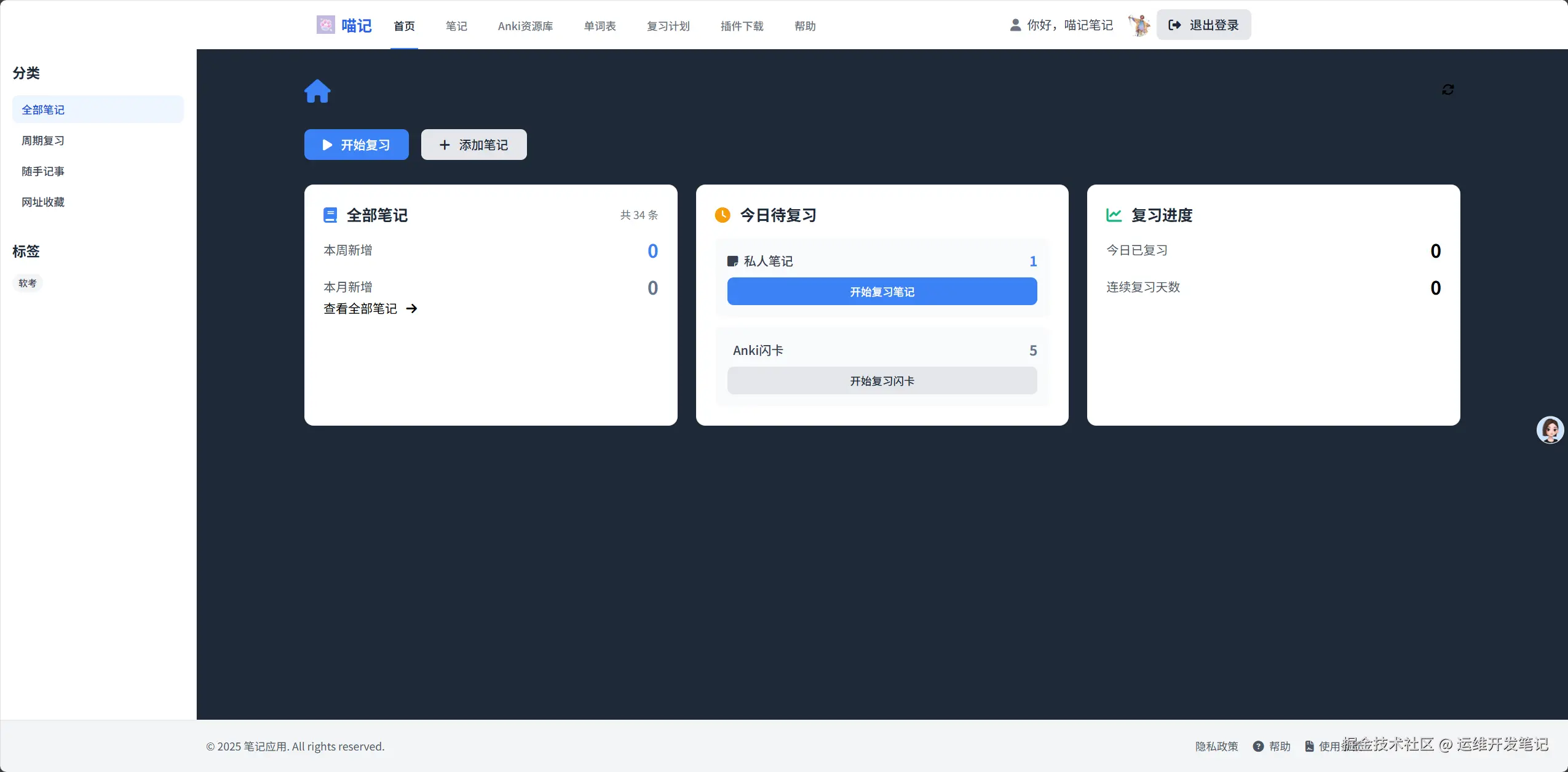 后来,我又发现似乎结合anki卡片来做一下复习也不错,于是又模仿anki的算法增加了复习的功能。