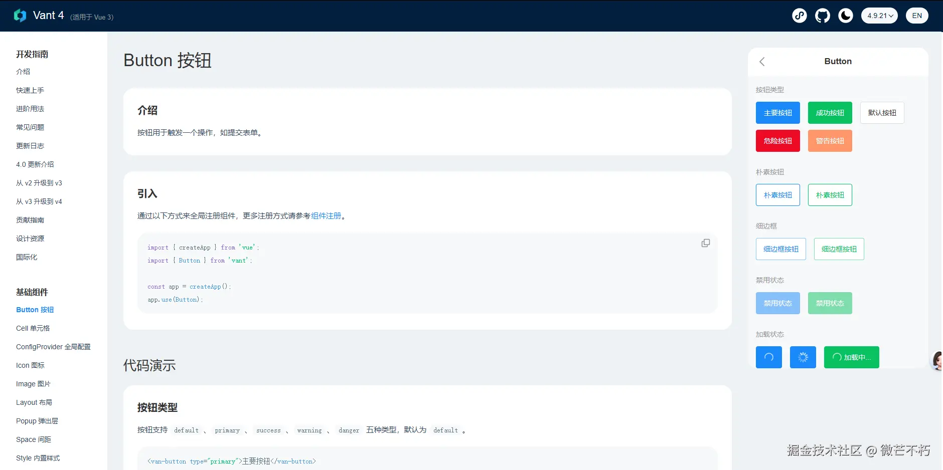 - 专注于移动端 H5 开发的 Vue UI 组件库,由字节跳动官方出品,在移动端场景中应用广泛,体积轻量(gzip 压缩后约 10KB),对各类移动设备适配性好,尤其适合开发手机端商城、工具类等移动应用
