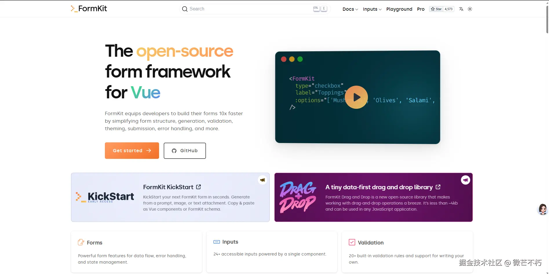 FormKit 是一款 “一体化的表单框架”,它不只是做验证,还内置了表单的 UI 组件、状态管理和数据格式化功能。