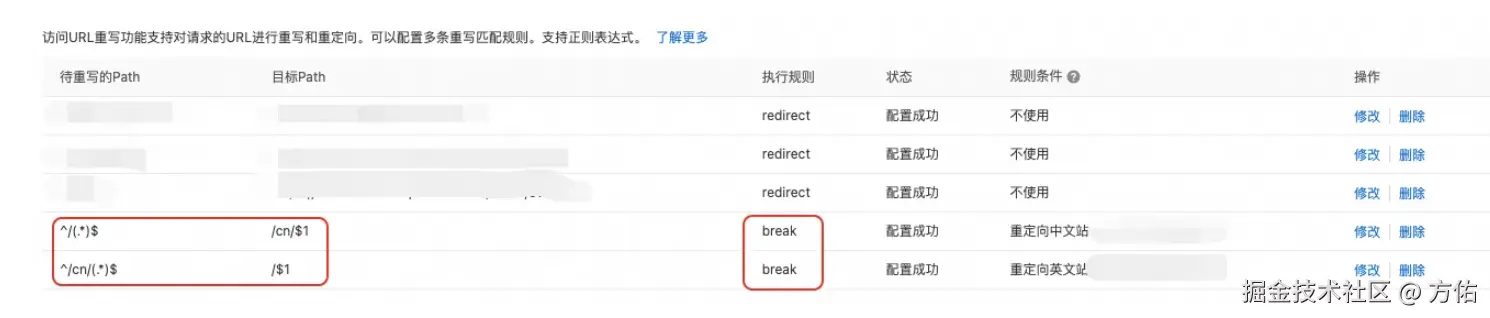 第一,添加规则引擎规则:「重定向到中文站」和「重定向到英文站」, 主要是两条规则