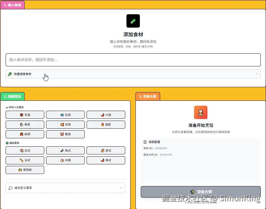 - 智能菜谱生成 - 基于食材和菜系偏好生成专业菜谱