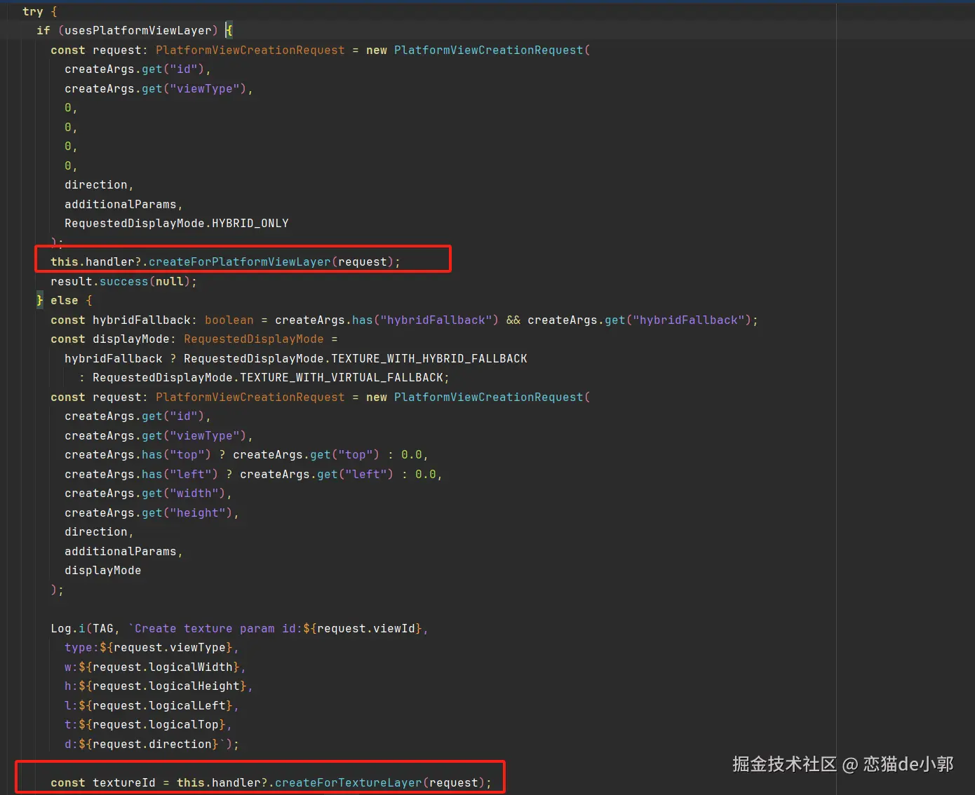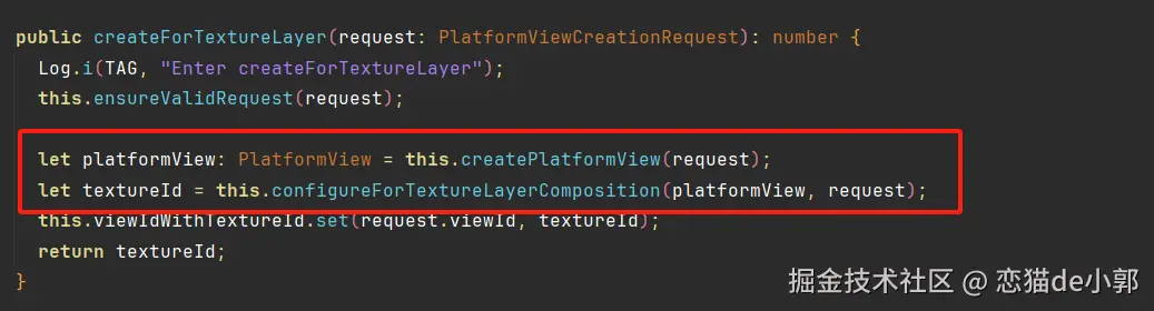而对于 createForTextureLayer ,流程会来到 PlatformViewsController 对象,核心流程主要有: