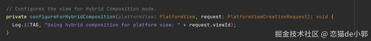 但是目前在鸿蒙 Flutter 的实现里,关于 createForPlatformViewLayer 的 HC 并没有实现,所以实际上只有 createForTextureLayer 纹理合成这一种 PlatformView 的场景: