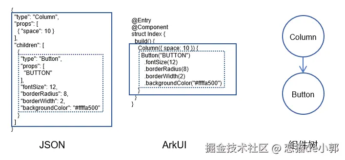 而 DVModel 就是这个“状态,它是一个用 @Observed 的可被观察的树状数据结构,用纯数据完整地描述了整个界面布局,包括哪个位置应该有一个 PlatformView,它有多大,参数是什么之类,具体类似: