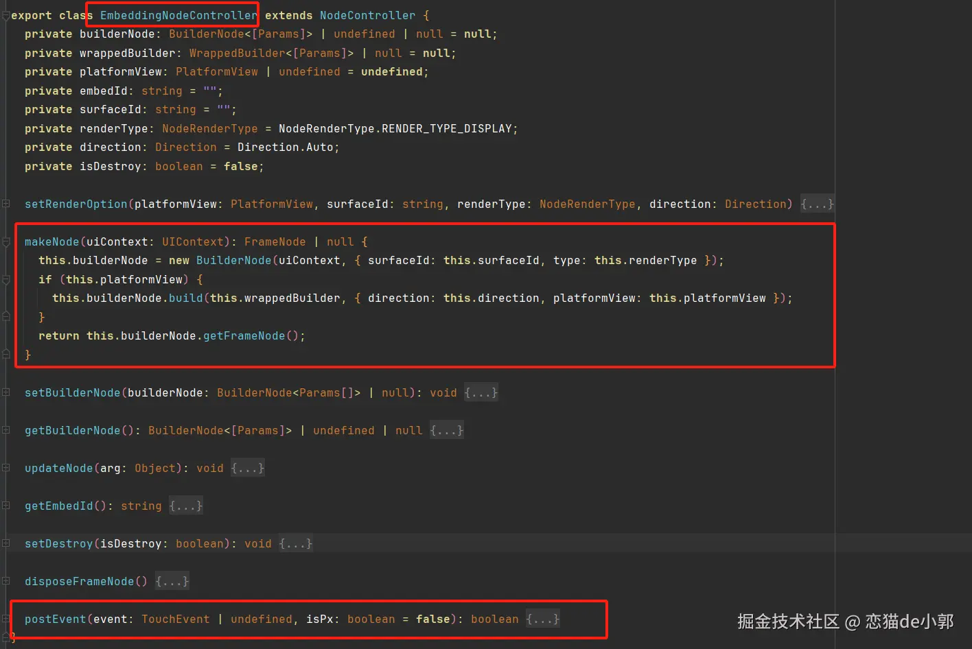 而这个 getView(): WrappedBuilder ,会在 EmbeddingNodeController 被获取,并且在 makeNode 里被 BuilderNode 使用,从而实现最终的纹理提取和渲染: