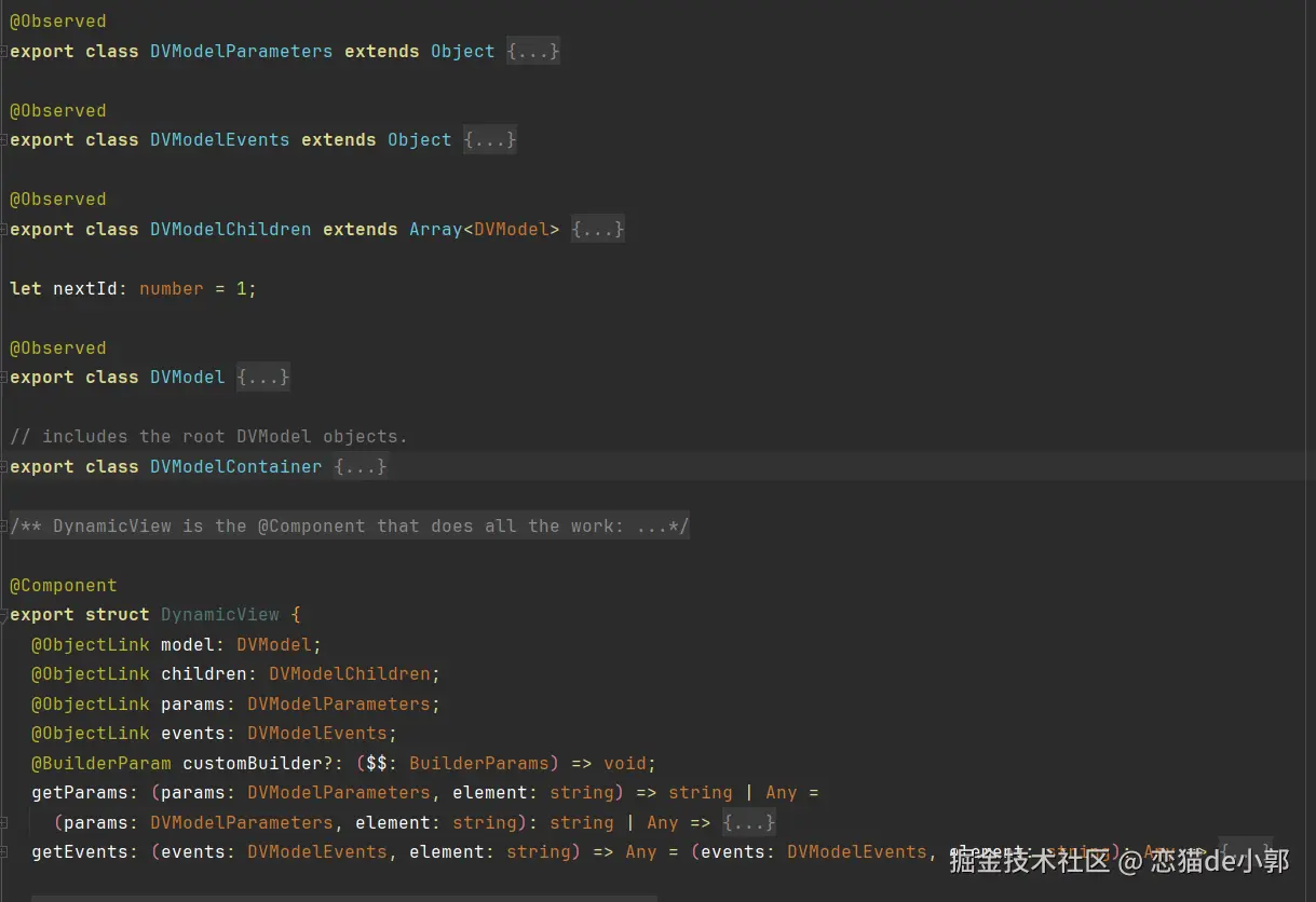 这里可以看到 DynamicView 是基于 DVModel 实体作为驱动,而 DVModel 的存在,则是为了用鸿蒙 ArkUI 的声明式范式来管理和渲染由 Flutter 发出的 PlatformView 命令式 UI 操作: