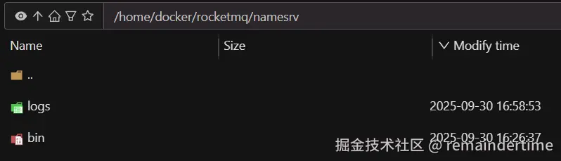 1.在 namesrv 文件夹中创建 logs、bin 文件夹