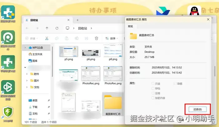 回收站能够帮助我们恢复短期误删的文件,如果回收站的存储位置不够,或者删除文件过大,则不可以通过回收站找回删除的文件。电脑已删除的文件怎么恢复?回收站的操作方法解说如下: