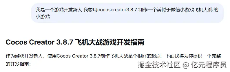 这么看来,想要完整地依靠AI完成一个Cocos的小游戏开发,先学Cocos。
