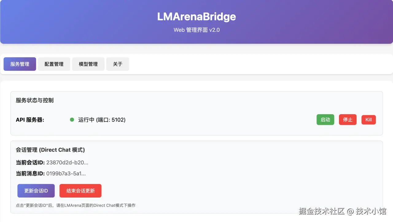 - 问题:LMArena 需要复杂的会话ID和消息ID管理
