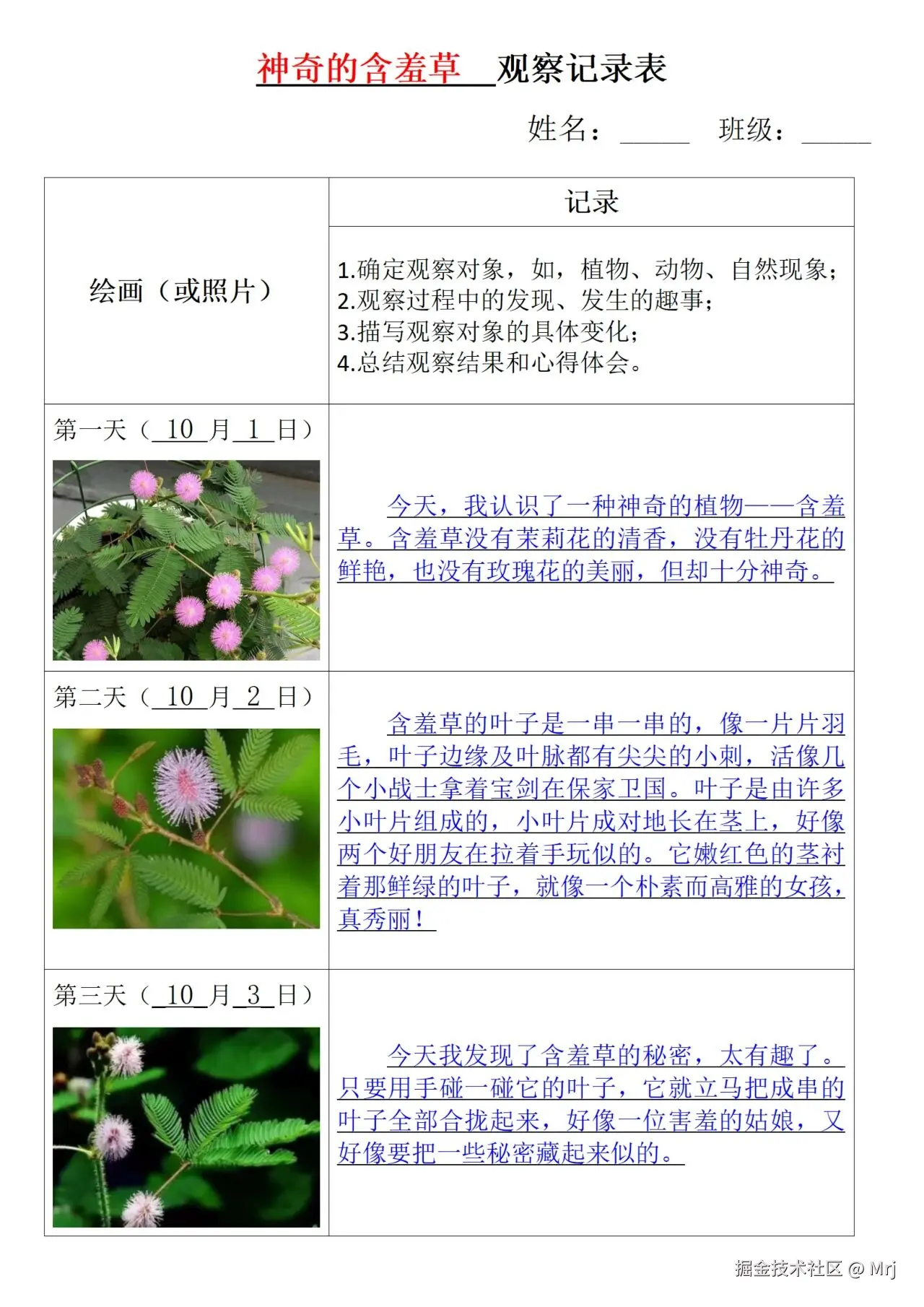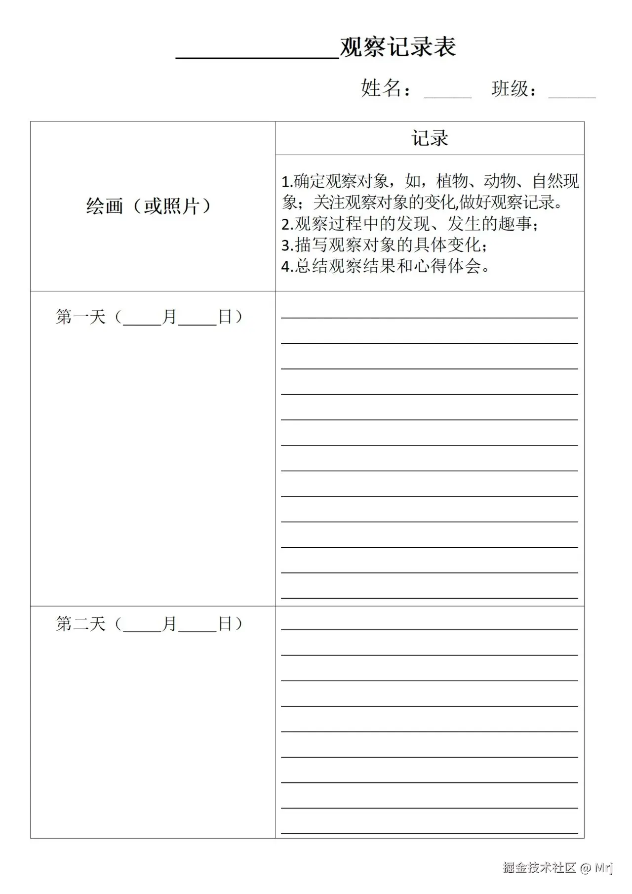 25年人教部编版四年级上册语文《第三单元习作写观察日记》,电子版可下载,这份四上观察日记记录表,把观察到的内容有条有理地写下来,有助于提升孩子的逻辑思维和语言表达能力,同时还可以培养孩子的观察能力和探索能力。需要的家长抓紧领取上,让孩子读一读、写一写吧。