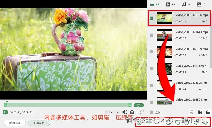 步骤3:录完视频后,要是觉得有不满意的地方,比如想加个淡出的收尾特效,或者开头结尾多录了几秒想删掉,不用再找别的软件,直接点击软件里的 “高级剪辑” 工具。点进去之后,里面就有现成的特效选项和剪辑功能。