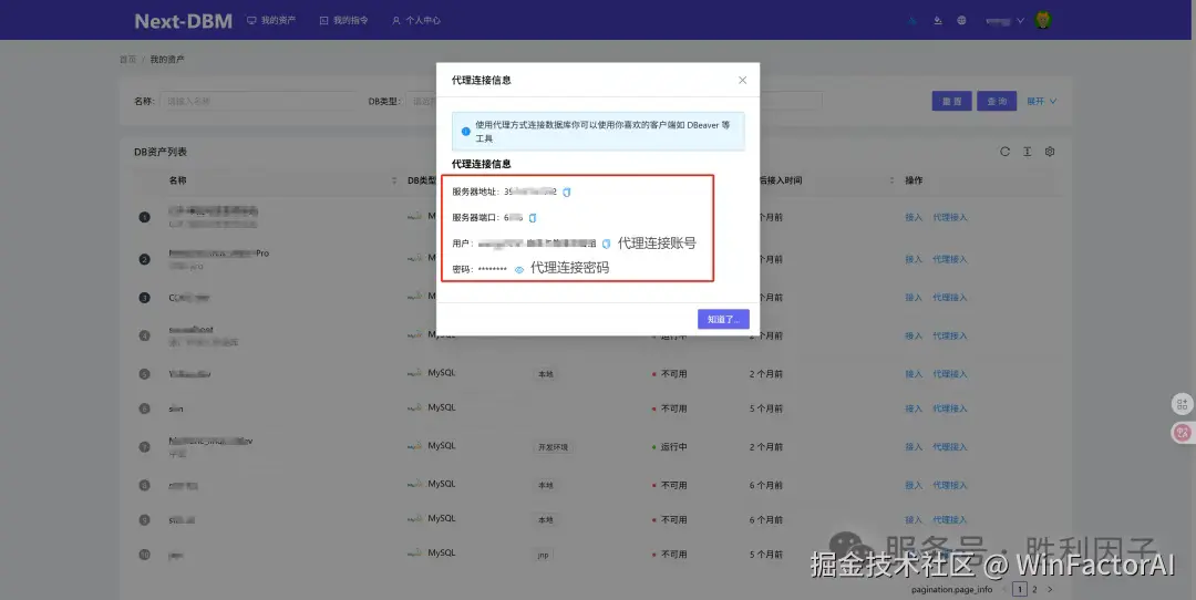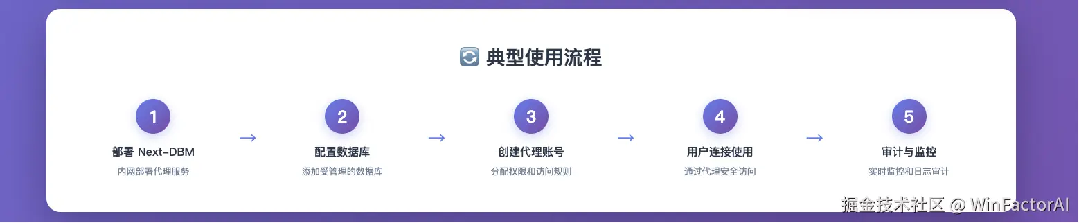 数据库无需开放外网端口,所有连接通过 Next-DBM 代理