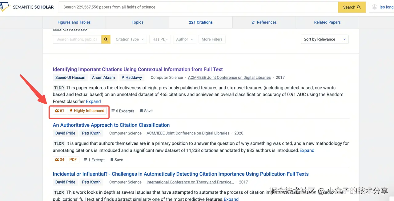通过 Semantic Scholar 的 Highly Influential Citations 看 “被引里有多少是高度影响(不是随口一提)”