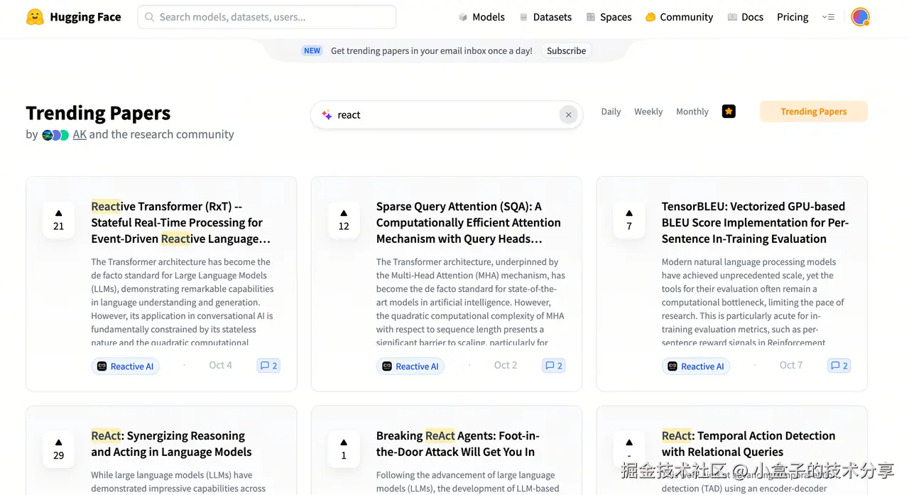 去 Papers with Code 看这篇(或同系工作)是否进入 SOTA 表格;很多任务有统一排行榜,能直观看到是否真压过强基线。 目前 Papers with Code 已并入 Hugging Face:huggingface.co/papers/tren…