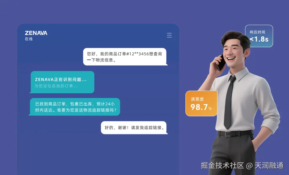 以ZENAVA在客户服务场景的应用为例,如今AI员工已经能够独立承担超过80%的标准化问题,让人类客服只聚焦在复杂场景,既降低人力投入,又让客户响应速度提升数倍。