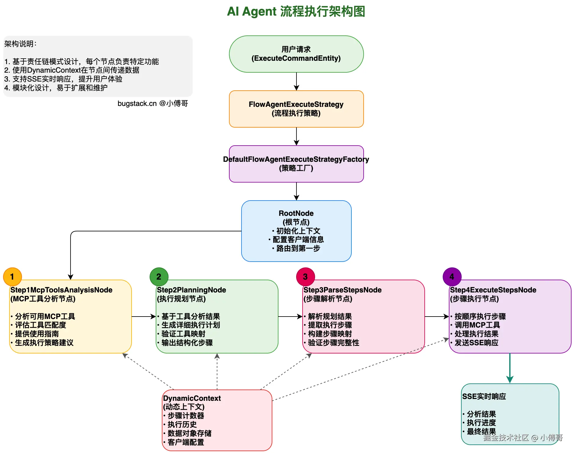 前面有伙伴问,为什么把实例化的对象写入到 Spring 容器,这里就是原因 - 客户端(UI),进行 POST 接口请求,这个过程需要封装一个 SSE 流式响应的接口,让 Step 1~4 各个执行步骤,把过程信息写入到流式接口。这里要注意,需要给接口返回的对象添加上对应的类型(什么步骤、什么节点、什么过程),以便于反馈给用户 Agent 在做什么。