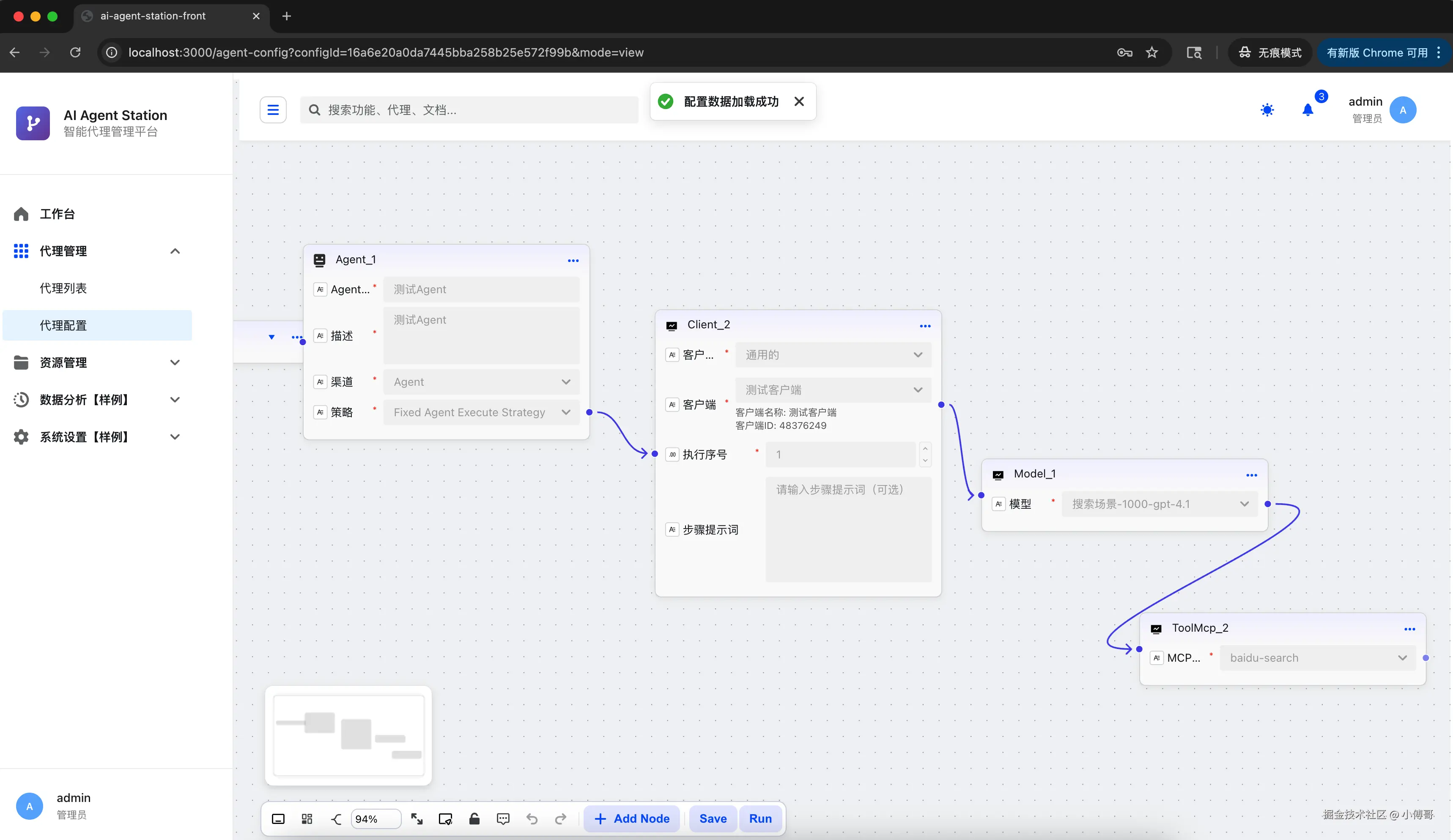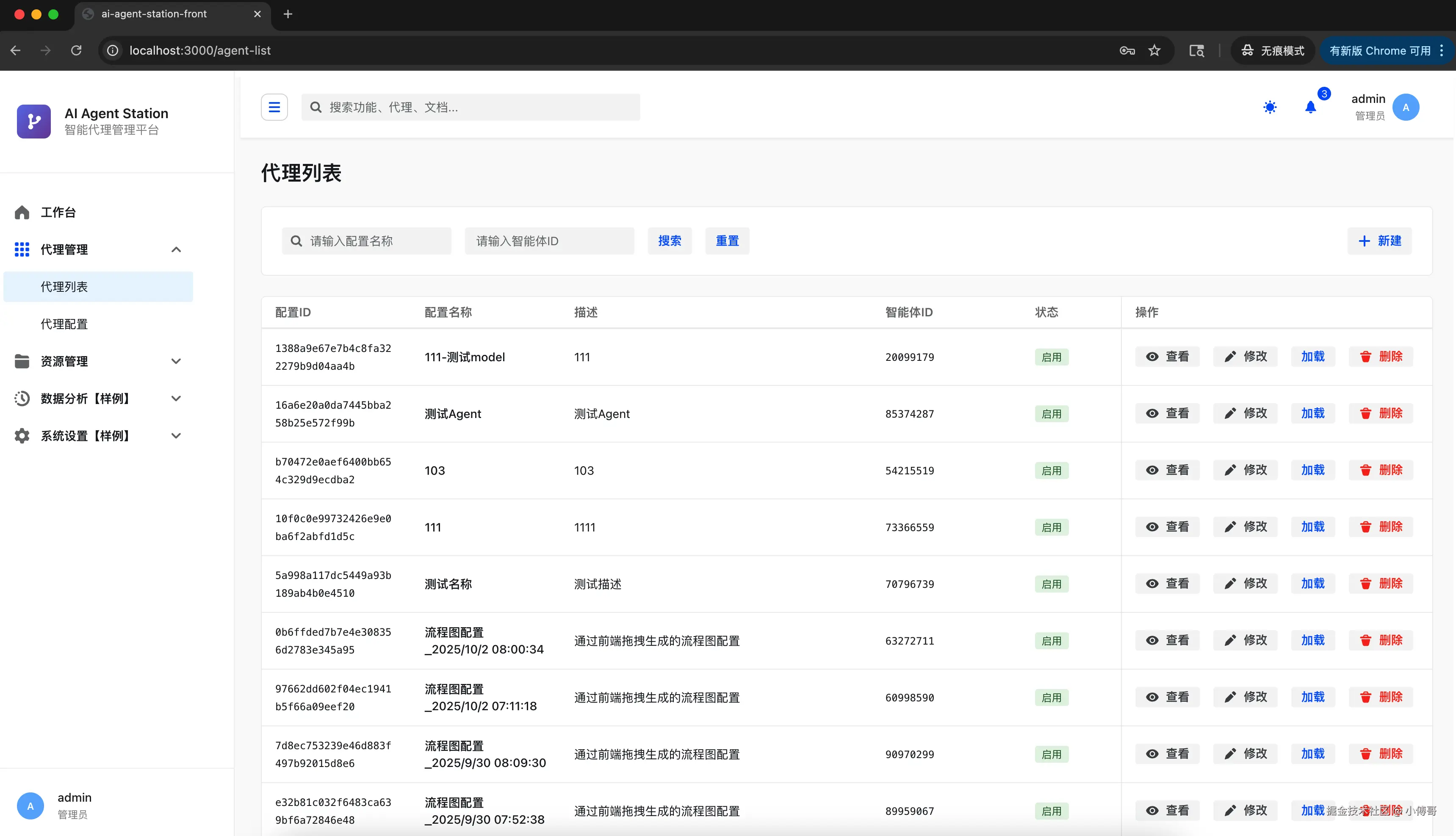 - 管理后台目前提供了,代理管理(拖拉拽编排方式配置智能体),资源管理(model、client、mcp、advisor、prompt)