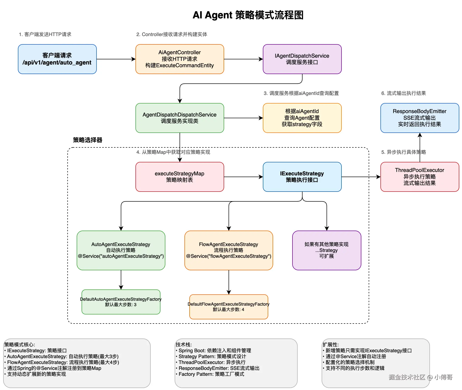 - 这里会根据用户的请求,进行策略路由,找到所需的 Ai Agent 执行策略进行处理。这里小傅哥也有意加入不同的策略,让大家可以看到很多的 Ai Agent 设计思路。