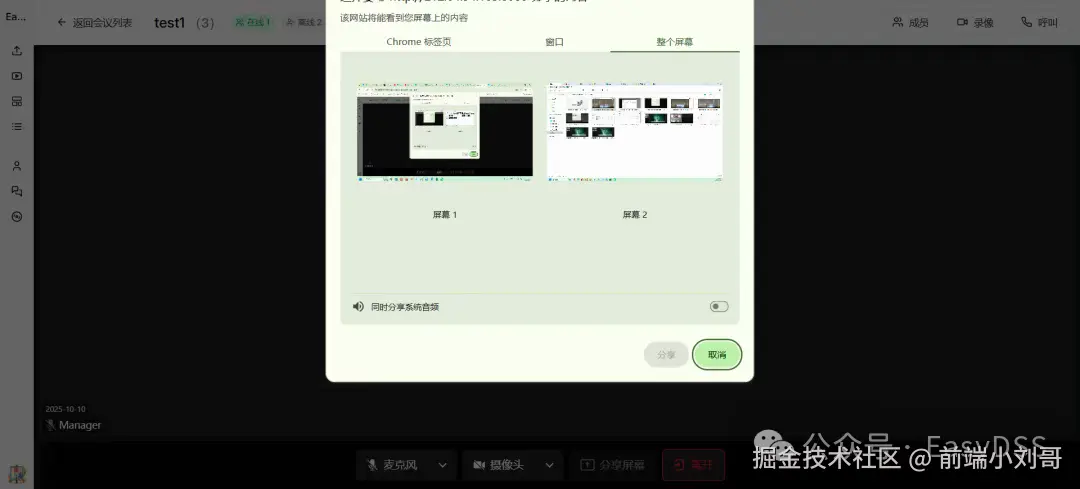 灵活参会方式:支持自主开关麦克风/摄像头、屏幕共享(特定窗口或全屏)、标签页音频共享,兼顾隐私与互动需求。