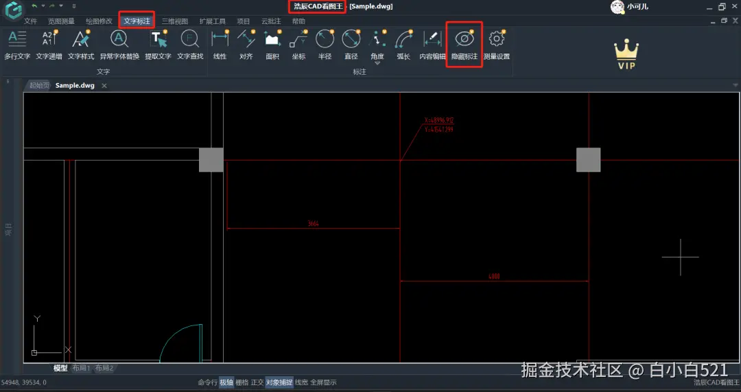 其次,在CAD看图的过程中,有时候过多的尺寸标注会对我们看图造成一定的困扰,这时候就需要我们使用浩辰CAD看图王的隐藏标注功能啦!