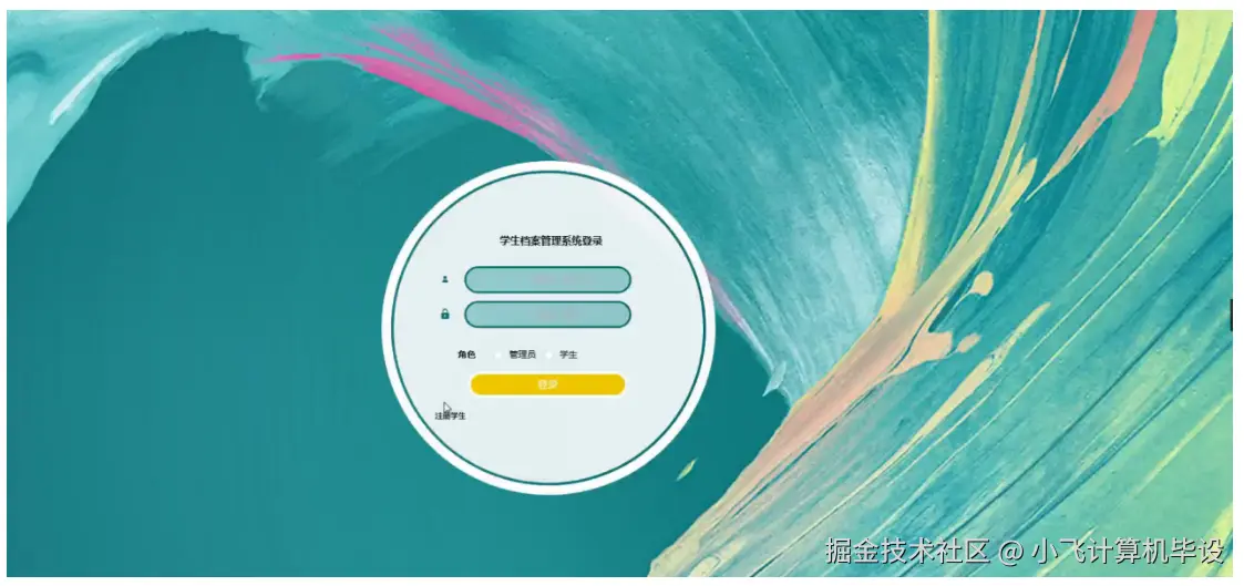 - 输入 “用户名、密码” 后,选择 “管理员” 或 “学生” 角色登录:管理员跳转后台管理页,学生跳转前台查询页;