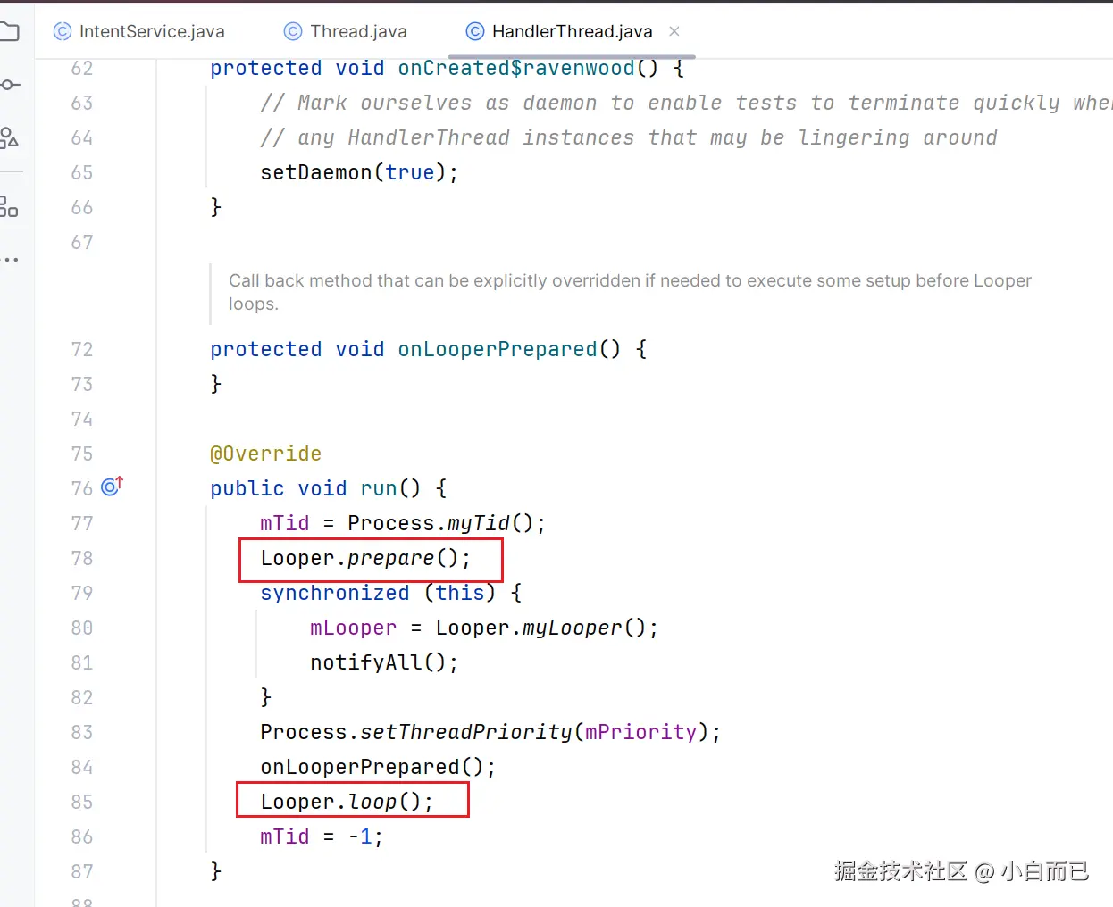 继承Thread,内部封装了Handler和Lopper,并且启动了Lopper循环。