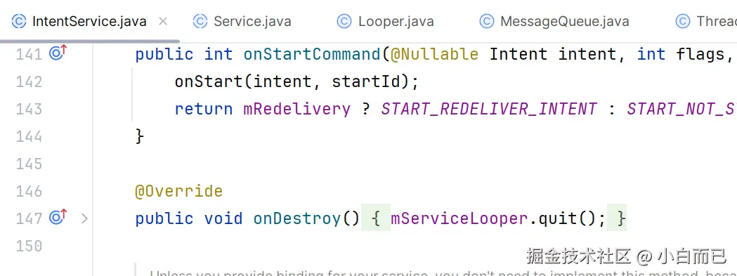 - Service回调onDestroy的时候,会让lopper直接退出,这样所有的消息就会被移除了
