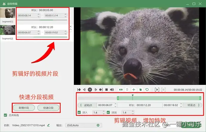 步骤3:录制任务结束后,软件会自动跳转至视频预览页面,在这里可以完整回看录制内容,检查画面是否清晰、音频是否无杂音。若想进一步优化视频效果,可以点击预览页的 “高级剪辑” 工具,进入编辑界面后可实现多种操作:裁剪多余片段、插入过渡特效等。