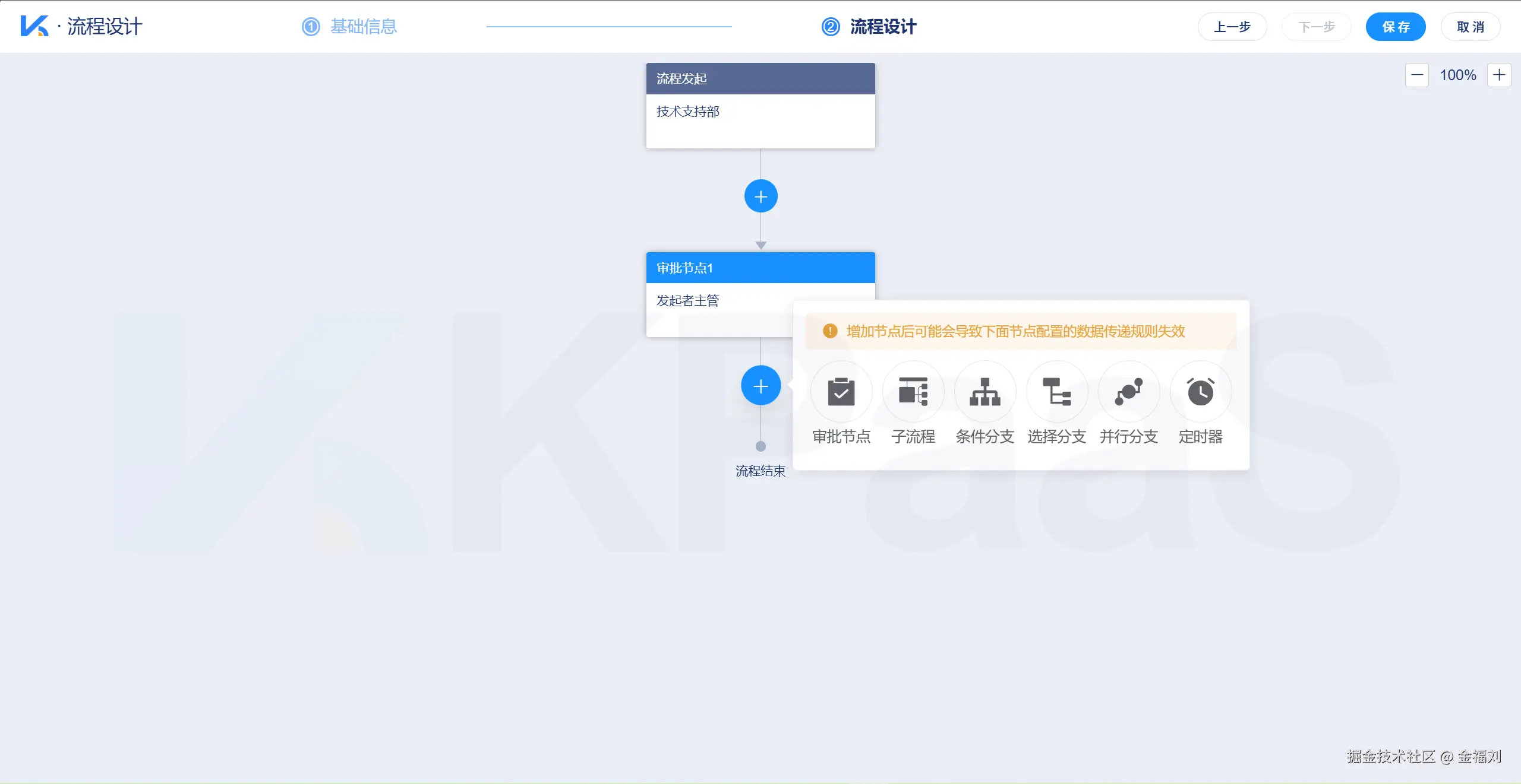 流程设计支持配置节点通知、超时提醒和自动催办功能。
