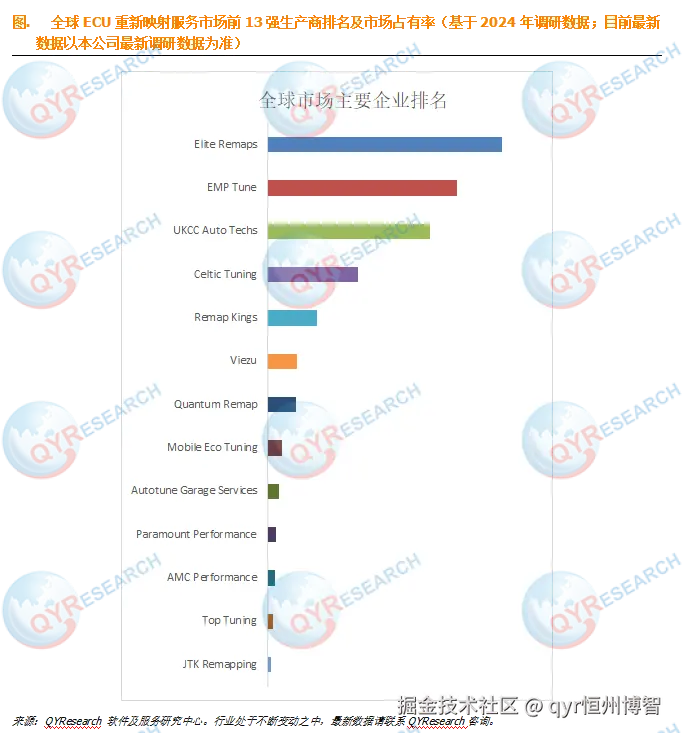 根据QYResearch头部企业研究中心调研,全球范围内ECU重新映射服务提供商top 5企业主要包括Elite Remaps, EMP Tune, UKCC Auto Techs, Celtic Tuning 和 Remap Kings。2024年,全球前五大厂商占有大约24.1%的市场份额。