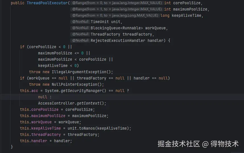 - 用于创建新线程的工厂。通过自定义ThreadFactory,我们可以为线程池中的线程设置更有意义的名称、设置守护线程状态、设置线程优先级、指定UncaughtExceptionHandler等。