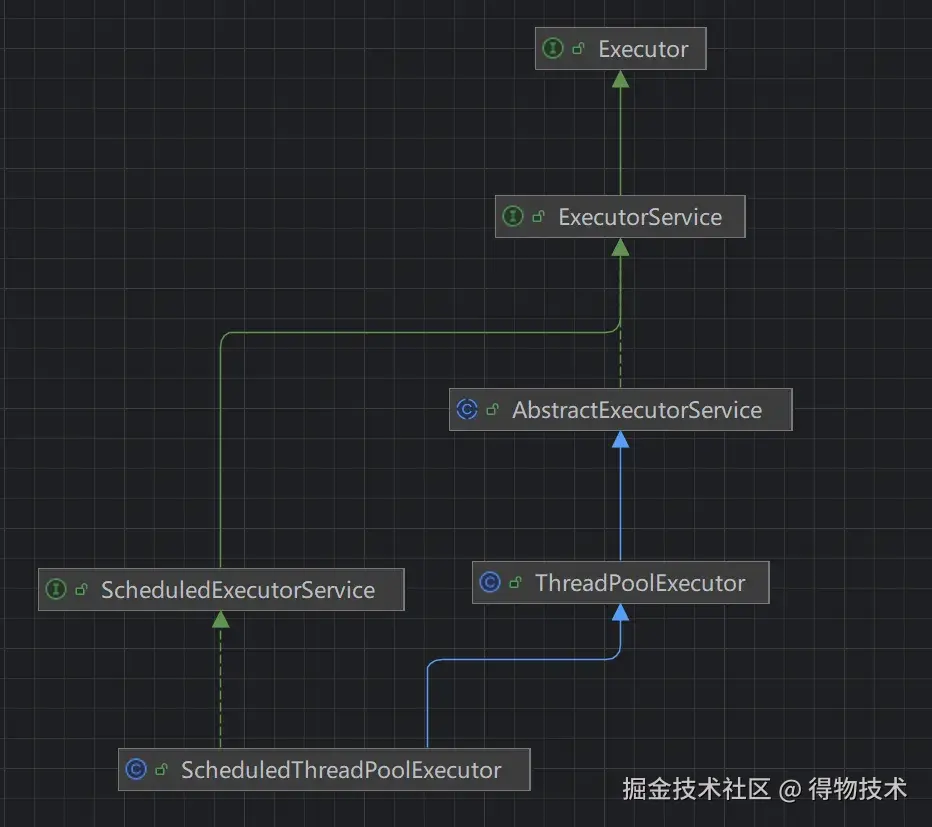 - ScheduledExecutorService:ExecutorService的扩展接口,支持延迟执行和周期性任务调度。