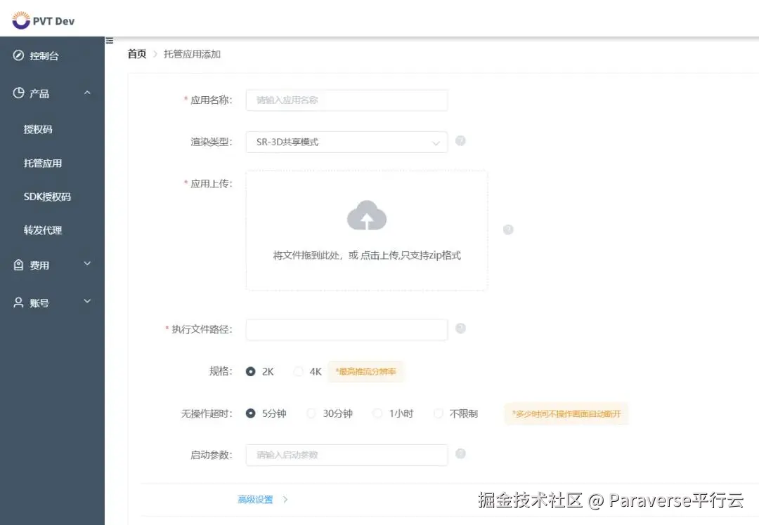 - 访问Paraverse平行云实时云渲染平台LarkXR的SaaS服务,注册个人开发者账号:www.pingxingyun.com/console/#/r…
