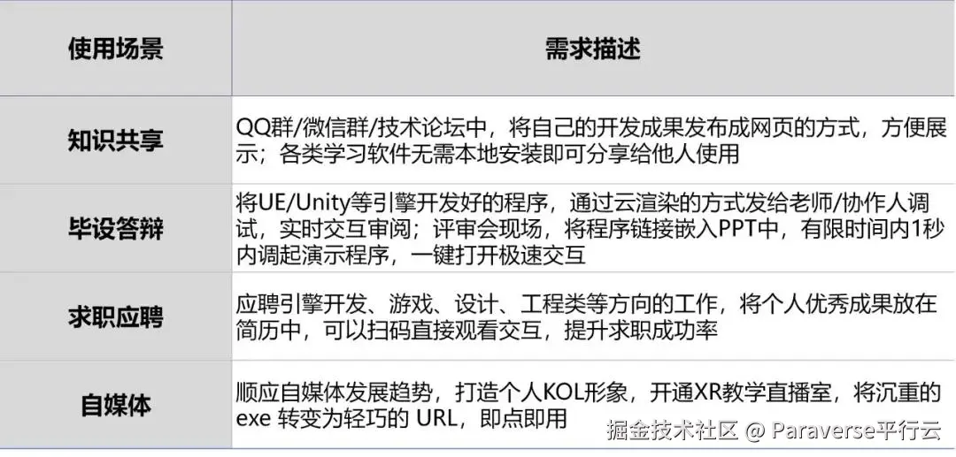 通过对使用近百位师生的访谈调研,我们总结了实时云渲染学习平台在教育教学场景的使用需求。师生角色不同,使用需求和场景也不同: