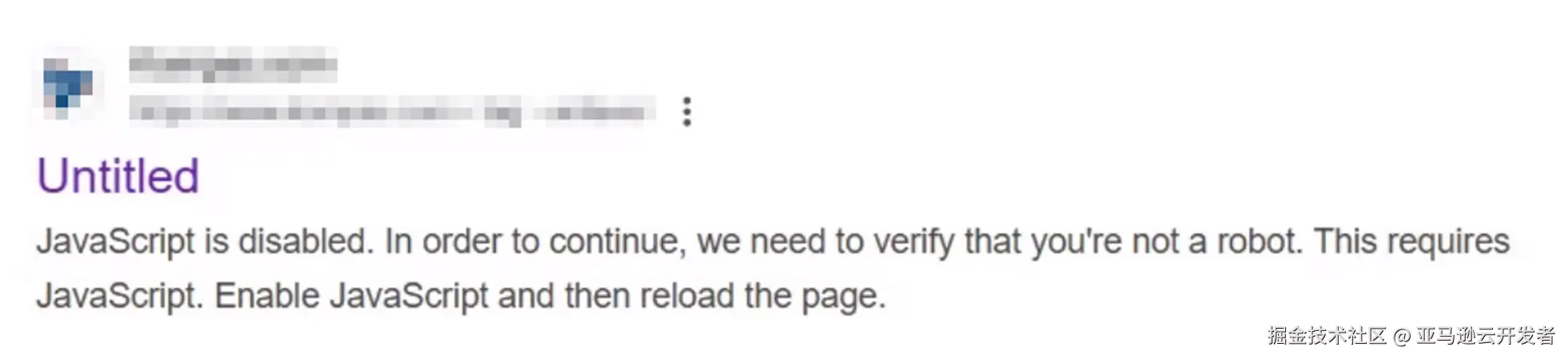 部分搜索引擎的爬虫无法正确处理 JavaScript Challenge。如下图所示,它们可能会直接将 Challenge 响应作为索引内容并显示在搜索结果页面上,严重影响网站的 SEO 表现。