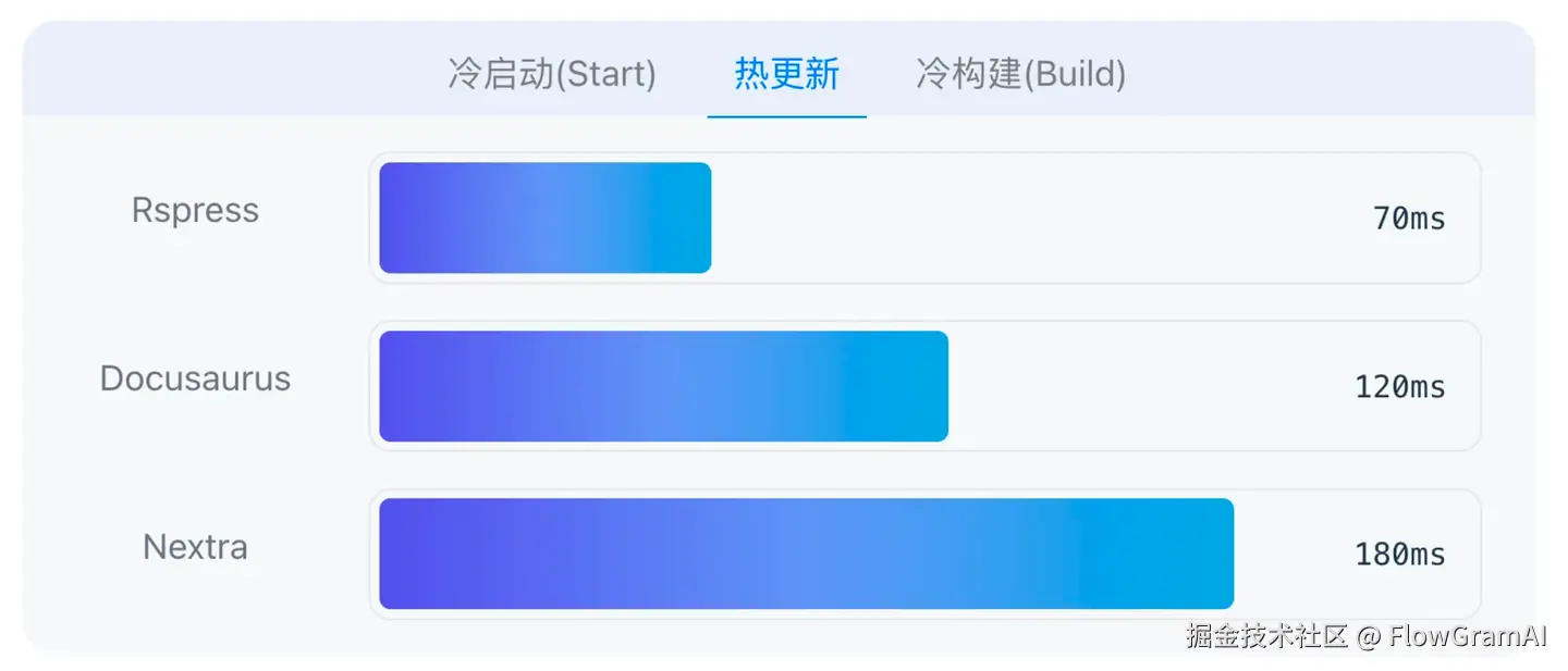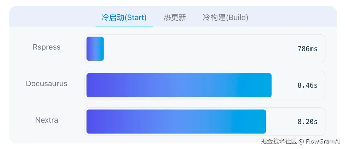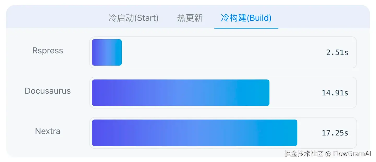 构建产物也是纯静态 HTML。 Rspress 相比较于另外两个热门的框架 Nextra、Docusaurus,性能有比较大的飞跃