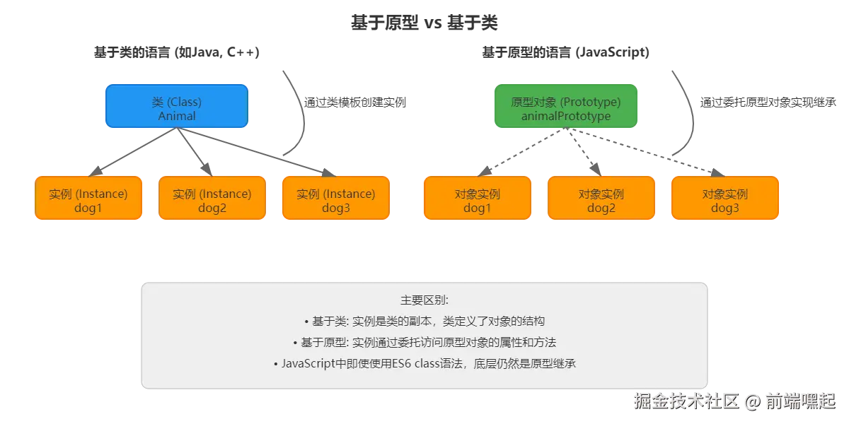 JavaScript的原型继承模型与传统的基于类的继承模型有很大不同,理解这种差异对于掌握JavaScript至关重要。