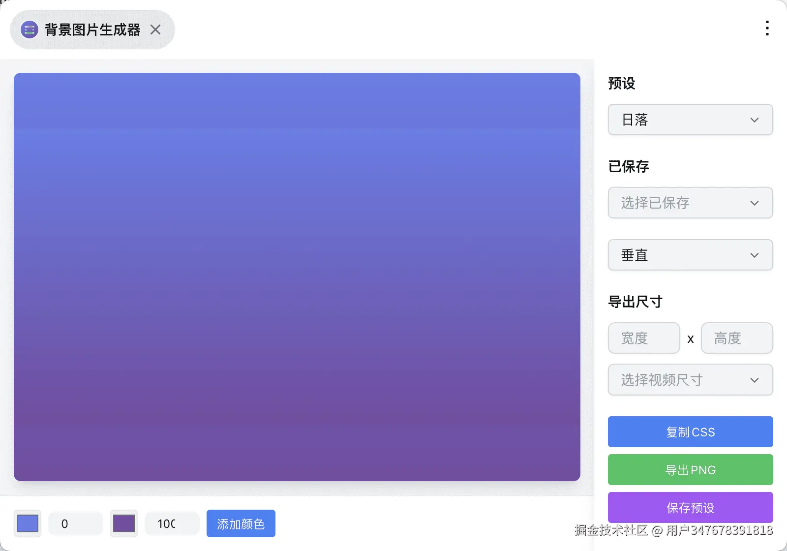 渐变背景图片生成器,支持自定义颜色、方向和导出