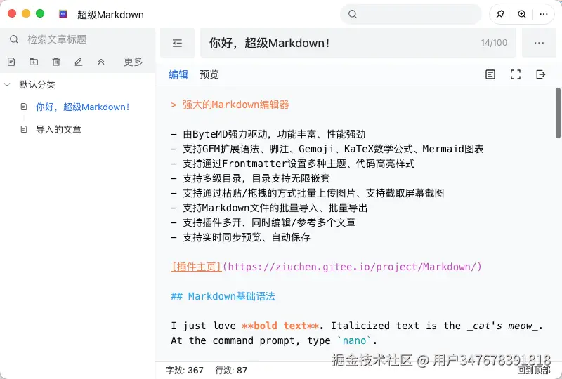 如果你是一个 Markdown 爱好者,那么 FocusAny 也是一个非常好的 Markdown 编辑器。通过安装 Markdown 插件,可以实现 Markdown 文件的管理和编辑。