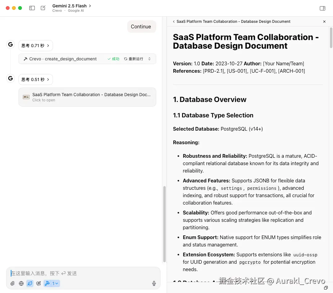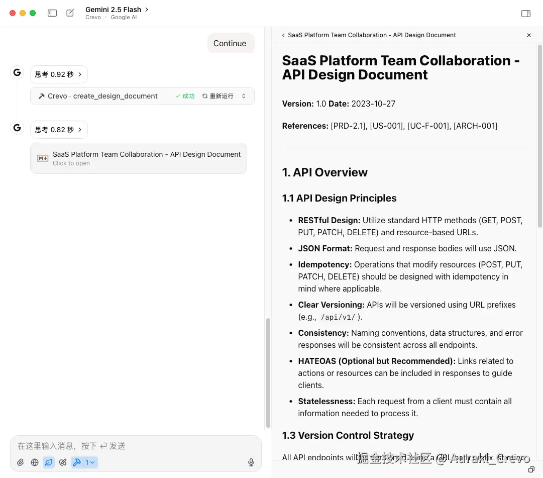 比如,在生成 API 设计文档时,它会参考前面的架构设计和业务流程文档,确保 API 设计和整体架构一致。