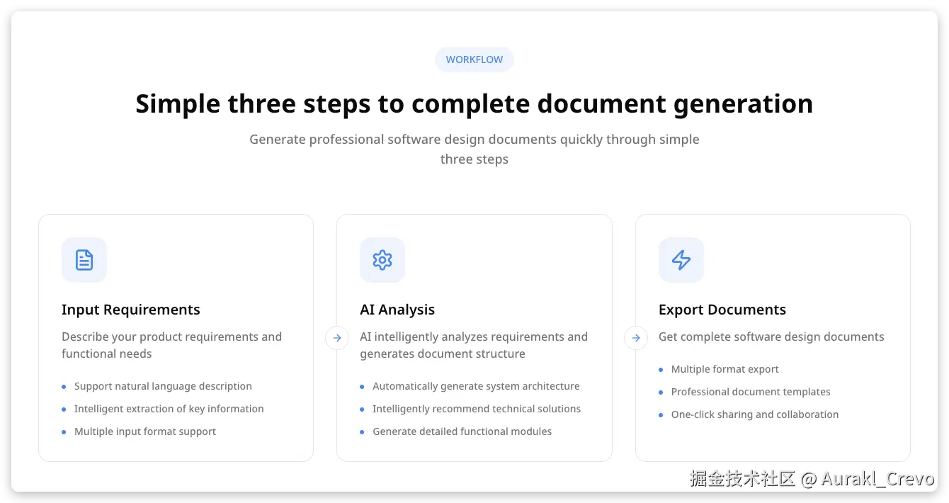 Crevo 是一个基于 Model Context Protocol (MCP) 的 AI 文档生成服务,专门解决"设计文档缺失"的问题。
