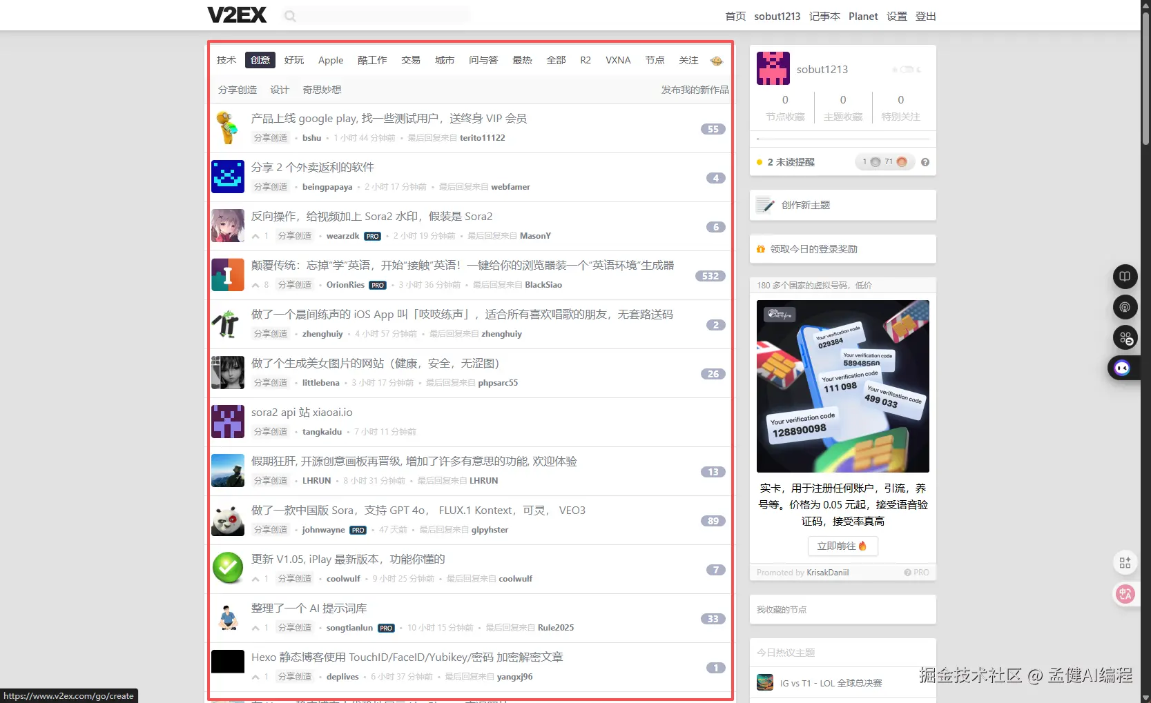 很多人以为 V2EX 只是个技术社区,但它在 Google 的权重非常高,尤其是它的"创意"板块: