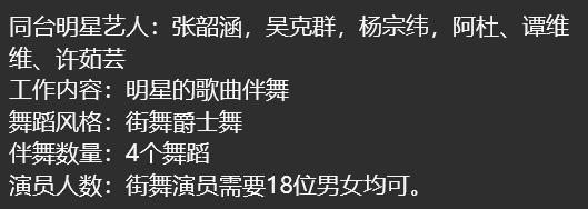 为了录制短片,要一些街舞舞者伴舞。只是这个市实在太小,跳舞的成年人基本可以等同于没有,除了培训机构几乎都要灭绝了,更别提街舞的人了。
