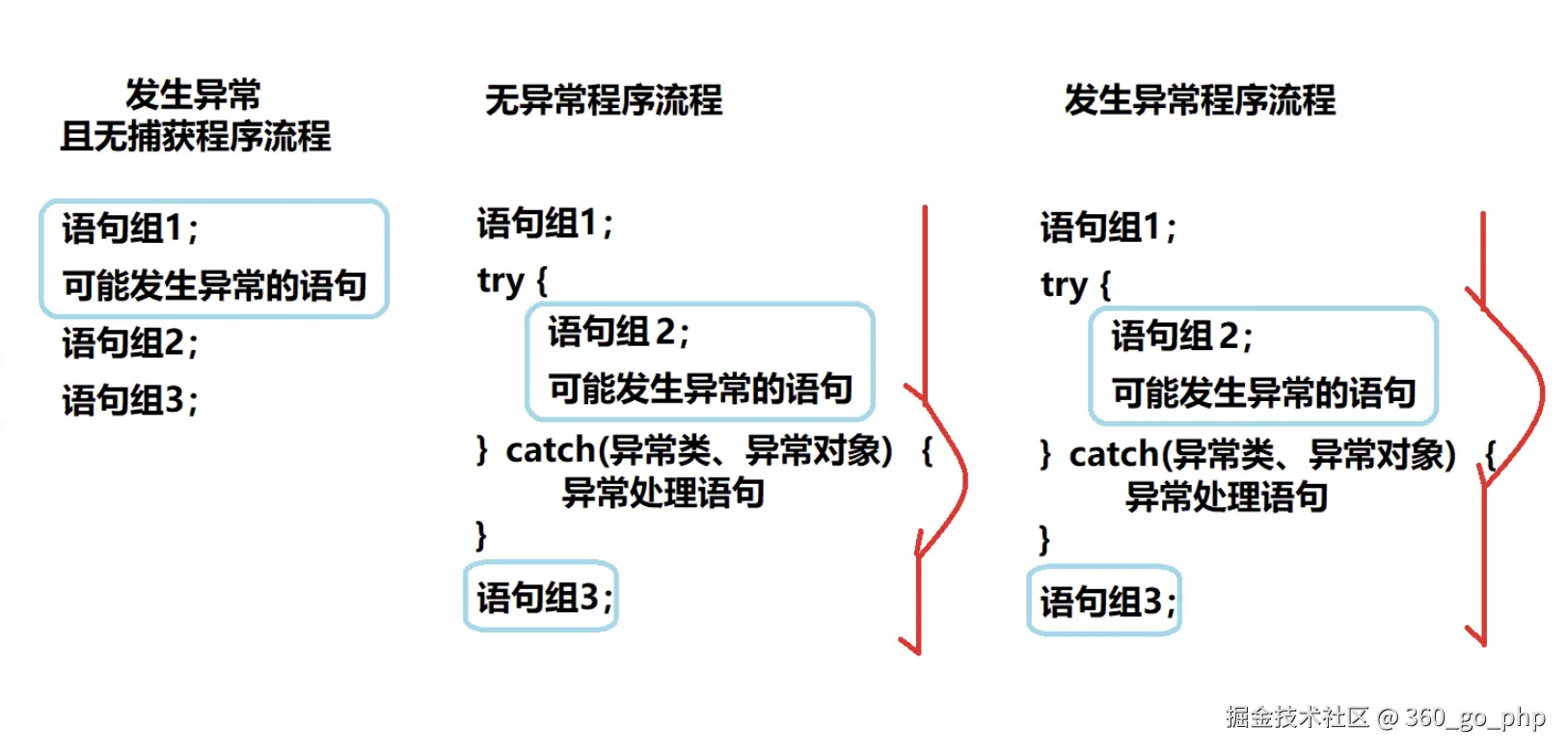- 检查异常:必须处理或声明,不处理会导致编译错误。