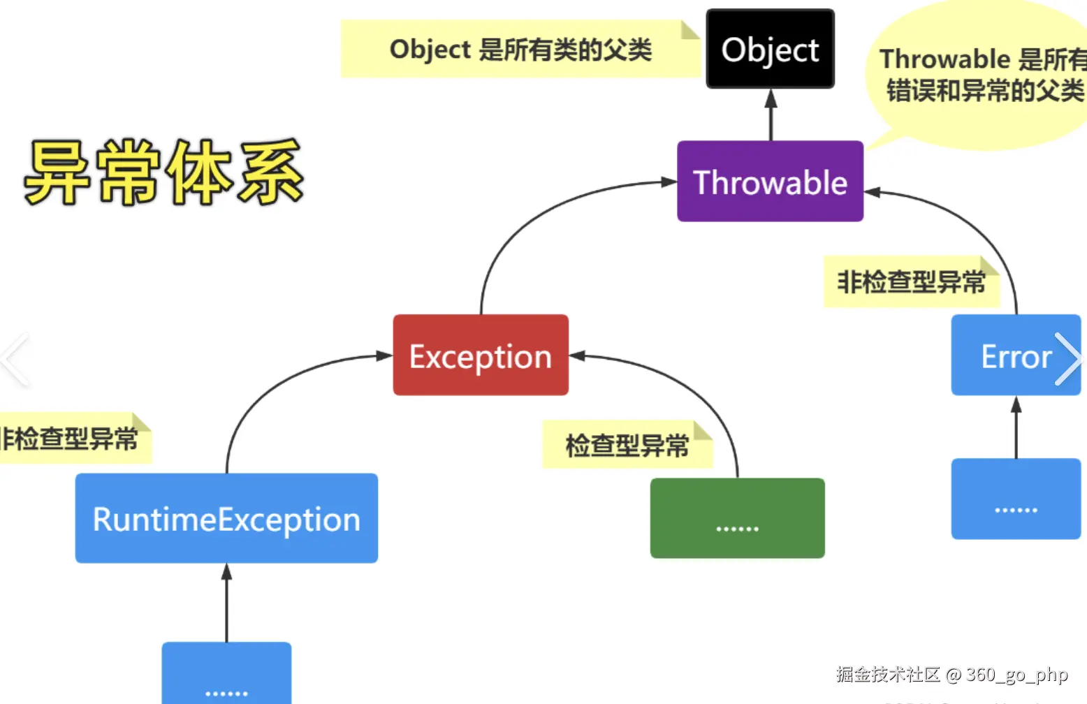 Java 中的异常用于处理程序运行时出现的错误情况。通过异常机制,可以捕捉错误,避免程序因异常崩溃,并且能够提供更好的错误处理和调试机制。Java 异常分为两大类:检查异常(Checked Exception)和非检查异常(Unchecked Exception)。